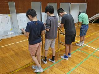 体育館を選挙会場として、実際の機材を使って体験します。