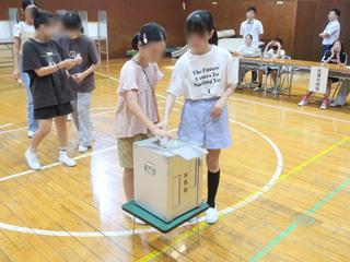 投票箱に投票用紙を入れます