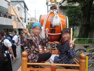 山車に乗って太鼓を叩いたよ