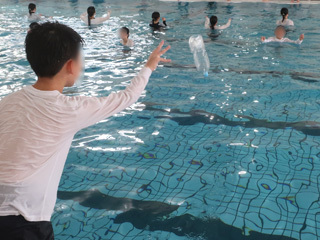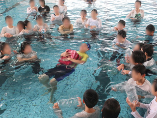 服を着ているととても泳ぎづらいことに驚き、足がつかない所で服を脱ぐのは難しく体力が奪われることを体験しました。