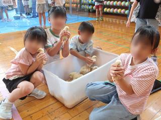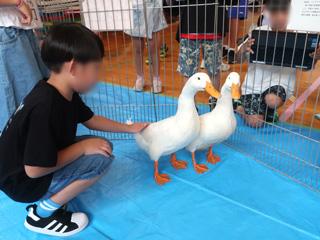 はじめは恐る恐る動物たちを触っていたこどもたちも、だんだんと慣れて仲よくなり、よく観察していました。