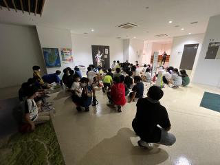 レク係のイベント、キャンドルファイヤーが始まります。みんなでしおりを見て、館内のきまりを守って移動できました。