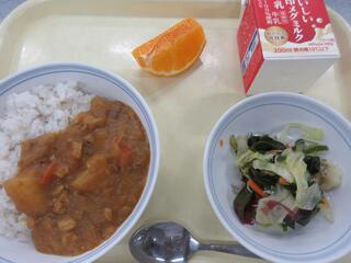 献立:チキンカレー 海藻サラダ デコポン 牛乳
