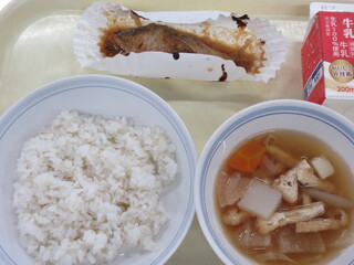 献立:ごはん 魚の麦みそやき けんちん汁 牛乳