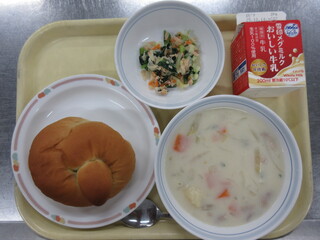 献立:あしたばパン ツナサラダ ホワイトシチュー 牛乳