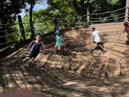 今日は、3年生が平和島アスレチックに遠足に来ています。たくさんの遊具で思いっきり遊んでいます。池の遊具では、池に落ちる子が続出です。それでも楽しく遊んでいます。近くの広場でお弁当を食べ、遊んで…。たくさん体を動かしました。学校まで、帰れるかなぁと心配していましたが、落伍者も出ず、みんな元気に学校まで戻ることができました。