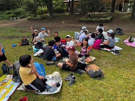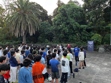 みんなで協力して部屋をきれいに清掃したので予定より早く行動ができています。一緒に宿泊した大森第四小学校のお友達と一緒に閉園式をしています。閉園式では大森第四小学校の校長先生からお話をいただき、学園の副学園長さんからも三日間の振り返りをしていただきました。