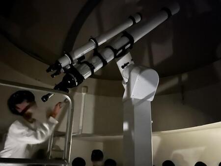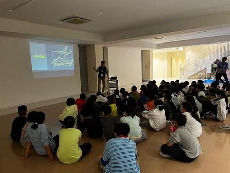夜7時半から星空観察会をしています。最初は、曇っていたので屋内で星座のお話を聞いていました。途中から晴れてきて満月が見えてきたので、外へ。望遠鏡で満月を見て、歓声を上げていたこどもたちです。大きな望遠鏡も見学させてもらいました。終わった後は、みんな眠そうにしています。今日は、いっぱい動いて疲れたことでしょう。みんな早く夢の中へいきそうです。