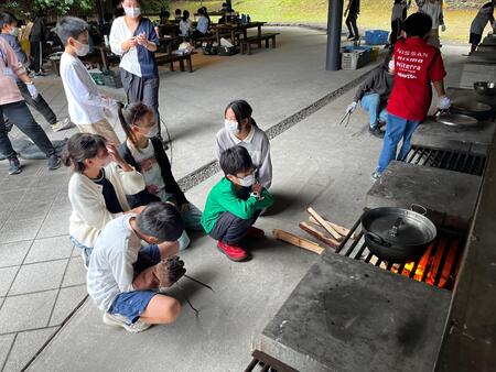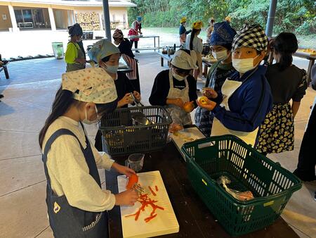 カレー作りが始まりました。火起し班と調理班に分かれて、作業開始です。美味しくカレーが出来上がるでしょうか?みんなで力を合わせてカレー作りに挑戦です。