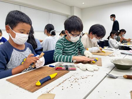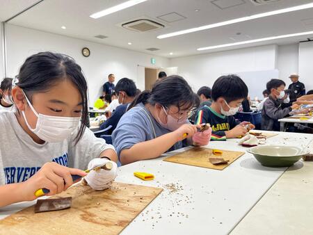 午後は、木のスプーン作り体験です。枝をナイフで削り模様をつけて、世界に1つだけのマイスプーンをつくりました。