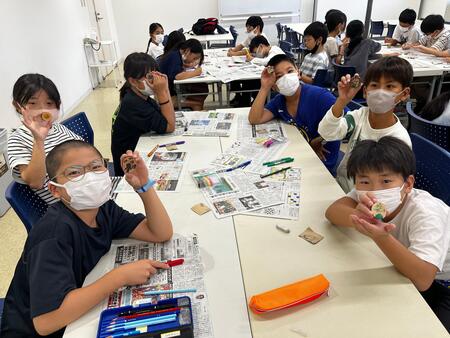 キーホルダー作りと並行して半分のグループがお土産を買いに駅の伊豆高原駅のお土産屋さんに来ています。家族のことを思い浮かべながら、買い物をしている姿は微笑ましいです。買い物をして、お店から出てくると「結構いいもの買えたぁ!」と満足そうにしている子、「お父さんとお母さんにこれ買ったんだ。」とお土産を見せてくれる子等々それぞれの子がお土産選びに満足したようです。これからお昼ご飯を食べて帰ります。