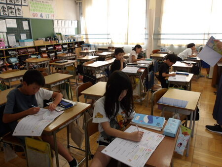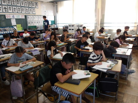 3校時の5年生の教室です。5年生は、10月6日から伊豆高原移動教室に行きます。今日は、学年で集まり、生活班の係決めをしています。班長・保健係、入浴係、レク係、キャンドルファイヤー係など2泊3日一人一人が役割を分担して、過ごします。楽しく、思い出に残る移動教室になるよう、しっかり準備して当日を迎えてほしいところです。