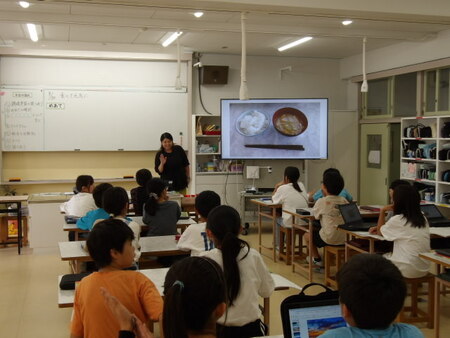 5校時の家庭科室です。5年生が調理実習をしています。今日は、ごはんとお味噌汁作りです。グループごとに手分けして作業をしています。昆布だしのお味噌汁を作るグループ、かつおだしのお味噌汁を作るグループがあります。お味噌汁の具の大根を切る手際のよい子がいて、聞いてみると「おうちでもやっている」とのこと。さすが、手慣れていました。どのグループもきっと美味しく出来上がることでしょう。