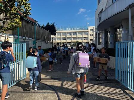 朝の南門です。代表委員会のこどもたちがあいさつ運動をしています。今回は、こどもたちのアイディアでくじ引きあいさつ運動です。登校してくるこどもたちにくじを引いてもらい、そこに書かれているミッションを実行してもらうという面白い試みです。「校長先生とあいさつをする。」「下級生にあいさつをする。」「大きな声であいさつをする。」「〇年生の先生とあいさつをする。」等々、様々なミッションが書かれています。休み時間に〇年生の先生を探し回っている子もいます。全校で楽しくあいさつ運動ができています。おかげで、登校してくる時間もみんな早くなっているようです。代表委員会のみなさん、朝早くからどうもありがとう!