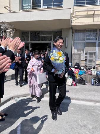 よく晴れた本日。6年生のこどもたちが道塚小学校を旅立っていきました。この1年間、道塚小を引っ張ってくれたリーダーが卒業していきました。式後、校庭で教職員、下級生、保護者の間を歩いていくこどもたちは、清々しい顔をしていました。校庭では、スマイルパパが設置してくれたフォトスポットで写真を撮る姿が見られ、小学校での日々を名残惜しく感じているこどもたちでした。6年生の皆さん、ご卒業おめでしょうございます。中学校へ行っても元気で頑張ってください。