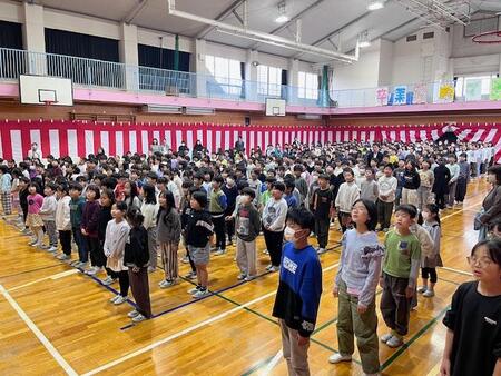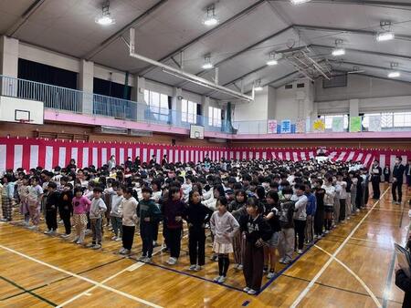 今日で令和7年度もおしまいです。体育館では、令和7年度修了式が行われました。各学年の代表が、修了証をいただきました。4月には、1学年進級です。5年生が児童代表の言葉を発表しました。5年生での経験を活かし、4月から最上級生として道塚小を引っ張っていってくれる決意を発表してくれました。最後は、みんなで校歌を合唱しました。