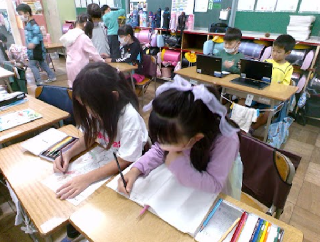 あいにくの雨天で、休み時間は教室で過ごしました。