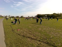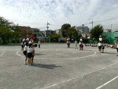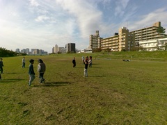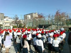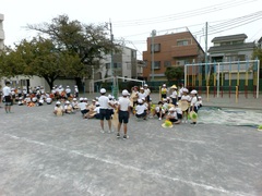 今日はなかよし班(縦割り班)の土手遊びの日です。それぞれの班で事前に遊びを決め、道具をもって多摩川の河川敷公園まで歩きます。天気が良く、班遊びには絶好の日でした。上級生は下級生をよく世話し、下級生は上級生の言うことをよく聞いて、仲良く楽しく活動することができました。