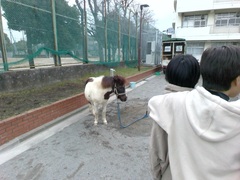 今日は移動動物園が南六郷小にやってきました。普段はなかなか見ることのできないヤギやポニーに直接触れることができて、こどもたちは大興奮でした。低学年生はポニーに乗せてもらうこともできました。