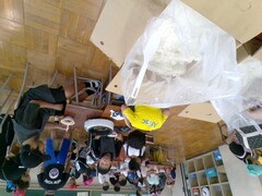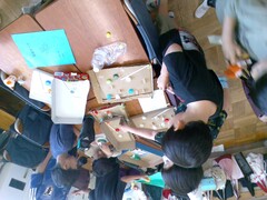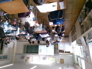 3・4校時に、1・2年生が合同で生活科「おもちゃランド」の活動をしていました。2年生が手作りおもちゃのブースを作り、1年生に遊び方の説明をします。1年生も、きまりをよく守って仲良く活動することができていました。