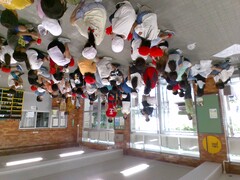 1日遅れになりましたが、5年生の伊豆高原移動教室の1日目の様子です。宿舎に着いてから、ドラマなどでもよく登場する吊り橋を通る約2キロメートルのグループハイキングに出発しました。アップダウンの続くコースでしたが、力を出し合って全てのグループが完踏することができました。また、夕食後のキャンドルファイヤーは、レク係の人たちを中心にして、歌やゲーム・ダンスで大いに盛り上がっていました。5年生は初めての宿泊行事ですが、時間や約束を守ってしっかりと行動することができていました。