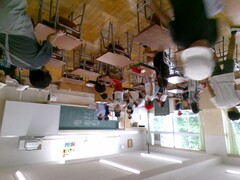 2時間目に校内を回ると、5年生が外国語活動をしていました。英語の先生が聞く質問にタブレットで答えると、正解者と正解数が一覧表示されます。こどもたちがタブレットをよく活用していて、感心させられました。