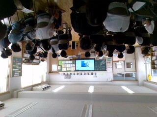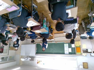 今日は5時間目に校内を回りました。5年生は算数で、展開図を使って立方体と直方体の学習をしていました。2年生の道徳では、算数や理科などの答えが明確な教科と道徳の違いを話していました。校庭では、4年生が競ってボールをとってシュートをしていました。