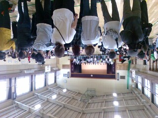 今週の土曜日はいよいよ開校40周年記念運動会です。今日の体育朝会は、運動会の開閉会式と準備体操の練習でした。天候が心配ですが、運動会本番も良い態度で元気に臨んでほしいと思います。