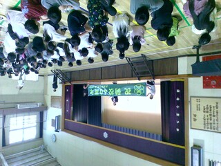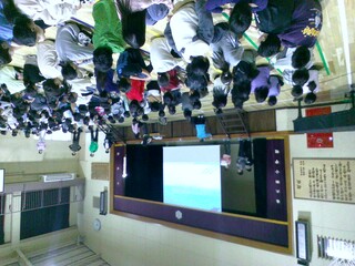 今日の児童集会は保健委員会の発表です。睡眠不足について、保健委員の人たち一人一人が調べたことを発表しました。理想的な睡眠時間や成長ホルモンなど、身体の休養と成長についてとても大切なことを発表していました。1年生にも分かりやすくて、これこそ児童集会にふさわしい良い内容だと思いました。ぜひ第二弾をやってください!