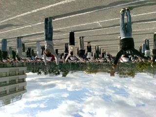 今朝の体育朝会は体操隊形に開く練習です。五月晴れの空の下で、号令で大きく開いたり、元の隊形に戻ったりする練習をしました。最後に、朝礼台上の先生と体全体を使ったじゃんけん大会をしました。最後まで勝ち残った人には、大きな拍手が贈られていました。