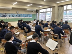 昨年度、離任・退任された先生方8名が来校され、離任式を実施しました。生徒たちは、先生方のお話をしっかりと聞き、終了後は学年ごとのお別れ会で別れを惜しみました。