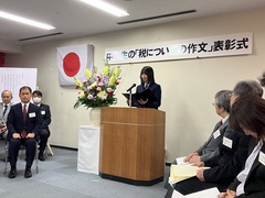表彰式では、受賞者に表彰状が授与されたほか、優秀作品として作文の朗読も行われ、税の大切さについて自分の言葉で堂々と発表する姿が印象的でした。