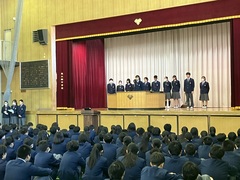 終業式では、校長講話の後、各学年の代表生徒が良かった点や改善点について発表しました。