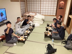 2泊目の夕食「すき焼き」はお肉も食べ放題。全員で12kg以上のお肉を食べました。