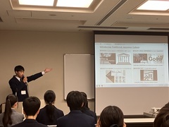 代表生徒たちは、それぞれが体験した内容等についてしっかりと英語で説明していました。