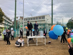 式終了後には、PTAの企画によるバルーンリリースを行いました。前生徒会長の掛け声を合図に、参加者全員で一斉に風船を空へと放ち、卒業生の新たな門出を祝いました。青空へ舞い上がる色とりどりの風船が、思い出に残るひとときを演出しました。