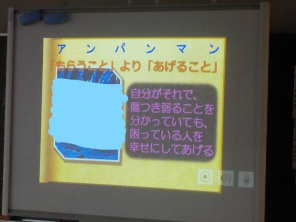 今日の全校朝会では、学校長が、漫画家のやなせたかしさんの誕生日が2月6日であることにちなんで、「アンパンマン」の話をしました。「アンパンマン」という漫画は、「もらうことより あげること」という大きな主題が根底にあることを伝えました。また、主題歌にあるように「なんのために生まれてきたのか」、今は分からなくても自分の生きる意味を探してほしいという願いを伝えました。6年生のスピーチでは、「針供養」や「建国記念日」などの行事に触れ、意味を教えてくれました。また、「なわとびタイム」を終えて、体づくりができたかを振り返る呼びかけをしてくれました。寒い冬を乗り切るためにも、続けて体づくりを続けていきたいですね。