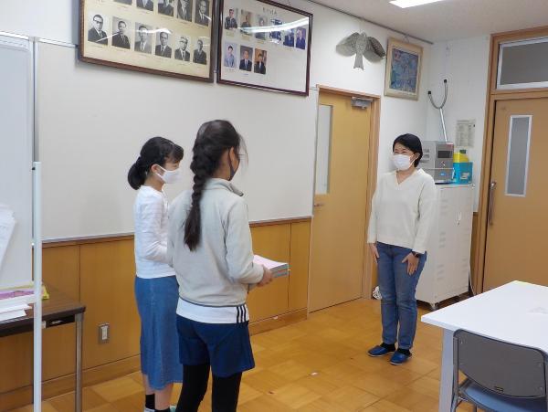毎日、子供たちの健康な学校生活のために、消毒作業をしてくださっている保護者の方々へ、子供たちが感謝の手紙を書きました。そして、今日の中休みに、運営・代表委員会の代表児童2名が、PTO団長様に手紙を渡しました。代表児童2名は、自分たちで考えた感謝の言葉を添えて渡すことができ、立派でした。今後、PTOの方々が封筒に入れて、お一人お一人にお渡しくださると思います。お手元に届きましたら、子供たちの感謝の気持ちを受け取っていただけると幸いです。毎日休みなく作業に来ていただくことは、本当に大変だったと思いますが、おかげで、子供たちが元気に過ごすことができました。本当にありがとうございました。