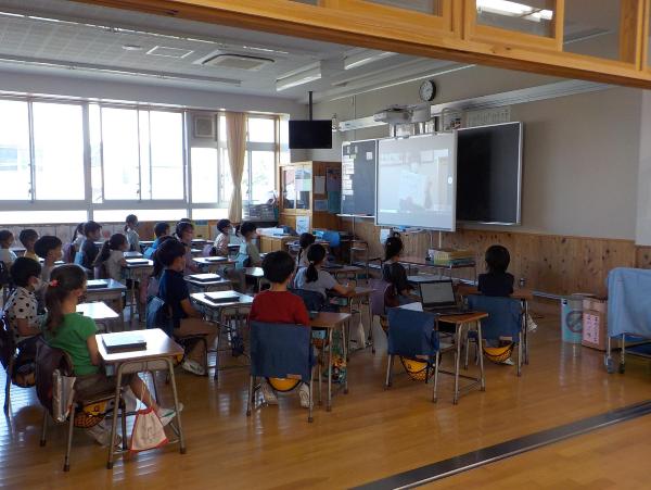 昨年度までお世話になった先生方とのお別れの式です。今年度も電子黒板を使って、放送で行いました。代表児童の子供たちが、思いのつまった言葉を伝えてくれて、離任された先生方もうれしそうでした。、直接お会いすることができなかった子供たちもいましたが、式の中で、先生方からの励ましのお言葉もいただき、しっかりとお別れができたことと思います。新天地での御活躍をお祈りしています。