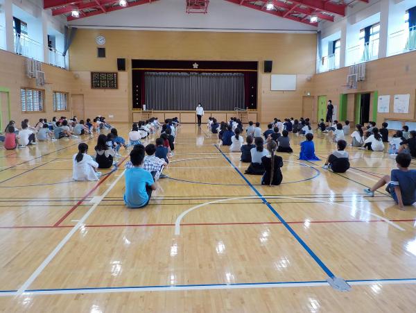 6年生が移動教室に向けて、様々な準備をしています。現地での活動が有意義なものになるよう、担当の係ごとに話し合いをするなど、準備は着々と進んでいます。今日は、キャンドルファイヤーで踊る予定の「マイムマイム」の練習や、宿泊に行く前に知っておくべき大切な話などがありました。ダンスは感染症対策のため、手をつながずに行いましたが、楽しんでいました。事故やけがのないよう気を付けて行ってきてほしいと思います。