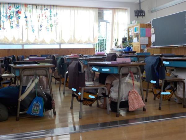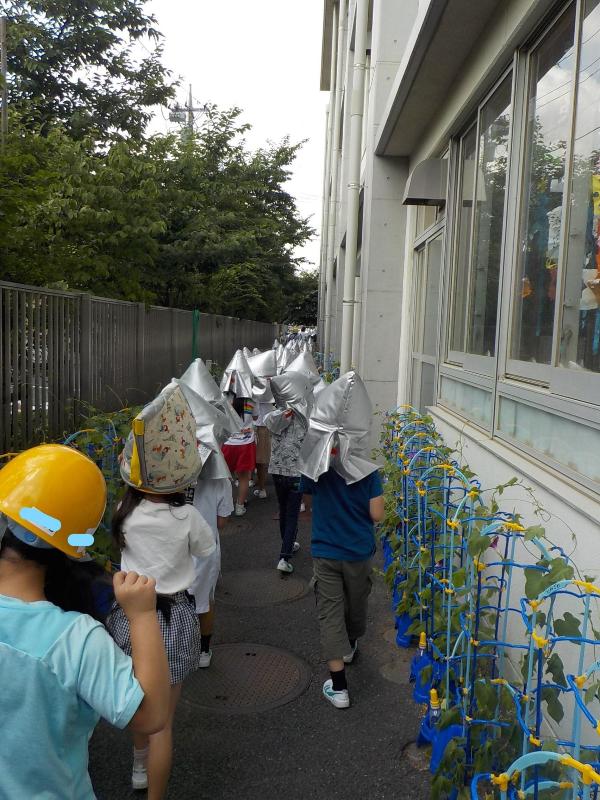 突然の雨で延期にした避難訓練を今日行いました。今日は、地震速報が流れてから、火災が発生し、校庭に避難するまでの訓練でした。1年生にとっては、校庭に避難して集合する訓練は初めてでしたが、よくがんばりました。