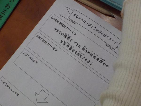 2年生が、学習発表会に向けて、各クラスで準備を進めていました。2年生は、国語で学習した「お手紙」を発表します。役割を確認したり、学習発表会へ向けての学級の目標を考えたり、自分の目標を書いたりして、気持ちを高めていました。いよいよ明日から、本格的に練習を始めていきます。みんなと力を合わせて発表を作り上げていけるといいですね。