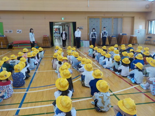 1年生はお話を真剣に聞き、歩行訓練をしっかり行うことができました。ご家庭でも登下校の安全な歩行について話題にしてください。