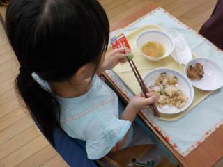 むいたそら豆は調理され給食で美味しくいただくことができました。自分たちでむいたそら豆の味は格別な様子でした。