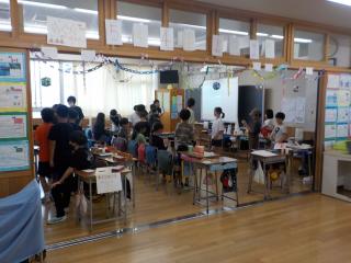 明日はいよいよ待ちに待った「こどもまつり」です。ボーリングに縁日、もぐらたたき、迷路、射的と楽しいラインナップが並びます。スローガンの「輝け工夫」にあるように各クラスみんなで知恵を出し合って、様々趣向を凝らした出し物を準備していました。