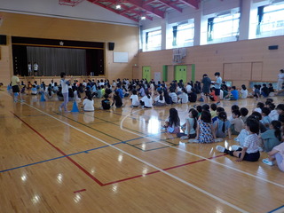 1年生は初めて体育館で集会を行いました。6年生が用意してくれた遊びに楽しんで参加することができました。6年生も1年生のお手本となるような立派な態度で参加することができました。集まって行うことの学びあいの良さを改めて感じました。他学年でも行っていけるといいです。