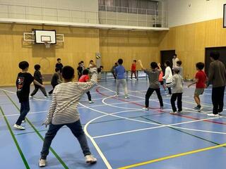1日目は開園式後にスポーツ広場での昼食、ハイキング、体育室遊びを行いました。みんな仲良く楽しんで活動できました。