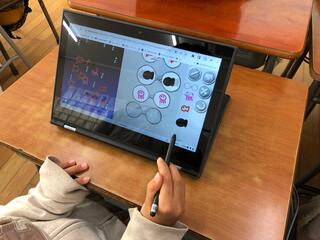 国語「スイミー」で学んだことを生かして、プログラミングアプリ「ビスケット」を使ってスイミーの住んでいる世界を想像して表現しました。自分の描いた海の中の生き物がプログラムによって動いているのを見て楽しんでいました。