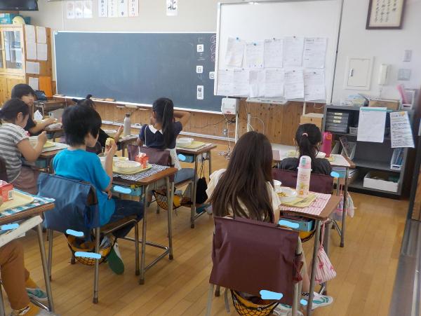 2年生が生活科の学習で、今日の給食で出されるトウモロコシの皮むきに挑戦しました。とても丁寧にむいてくれたおかげで、おいしくいただくことができました。2年生は、トウモロコシの様子を観察したり、においをかいだりして、季節を感じることもできました。