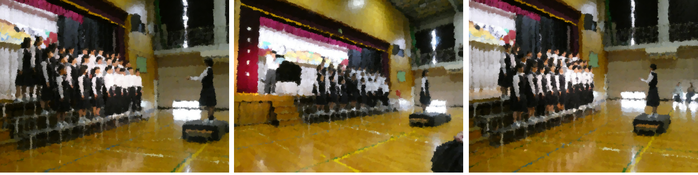 教室や廊下、音楽室や体育館ーー